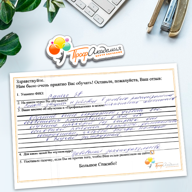 После успешного окончания обучения вы получите документы установленного образца. Высылаем по почте заказным письмом.