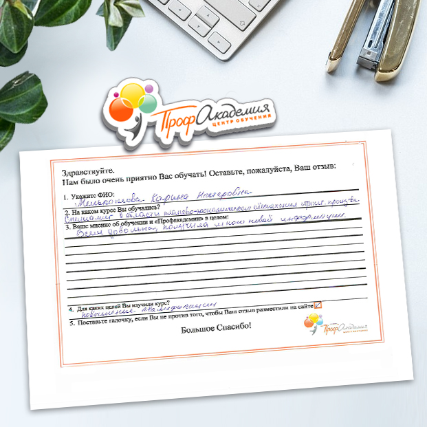 После успешного окончания обучения вы получите документы установленного образца. Высылаем по почте заказным письмом.